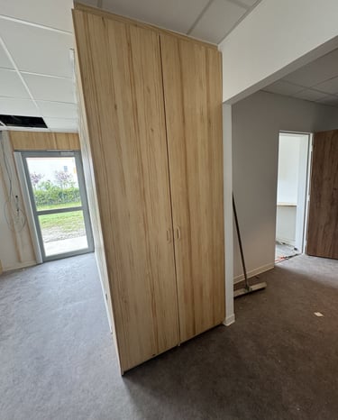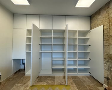 La conception de cette aménagement de placard sur-mesure, pour une société Bordelaise, à remplit tout les critères de rangement demander par le client. La mise en place de nombreuses étagères à différentes hauteur à permis une optimisation du rangement des nombreux documents par secteur d'activités.