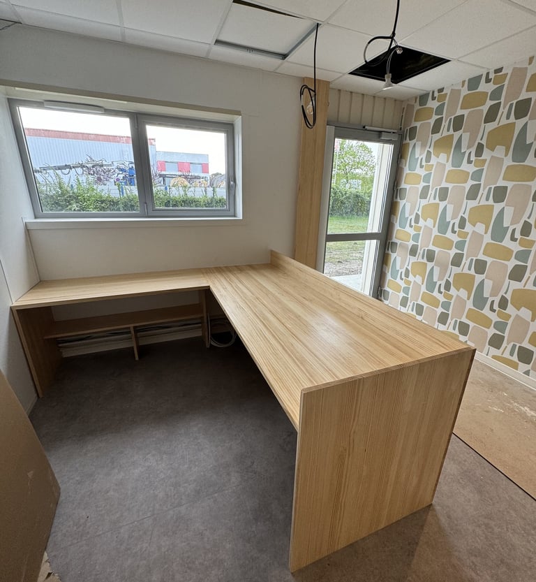 L'aménagement de bureau en bois massif est une option moderne et élégante pour créer un environnement de travail professionnel et agréable. Le meuble en bois apporte une touche de luminosité et de légèreté à l'espace, tout en offrant une grande résistance et durabilité.