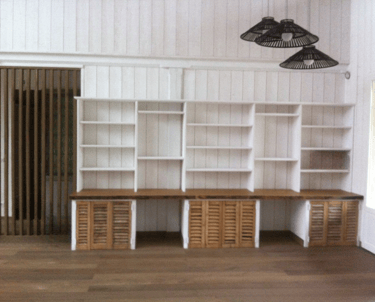 La bibliothèque avec portes persiennes est un meuble élégant et pratique pour ranger vos livres et vos objets précieux. Les portes persiennes ajoutent une touche de sophistication et permettent de dissimuler le contenu de la bibliothèque. Ce meuble est parfait pour les amateurs de design intemporel et de rangement organisé.