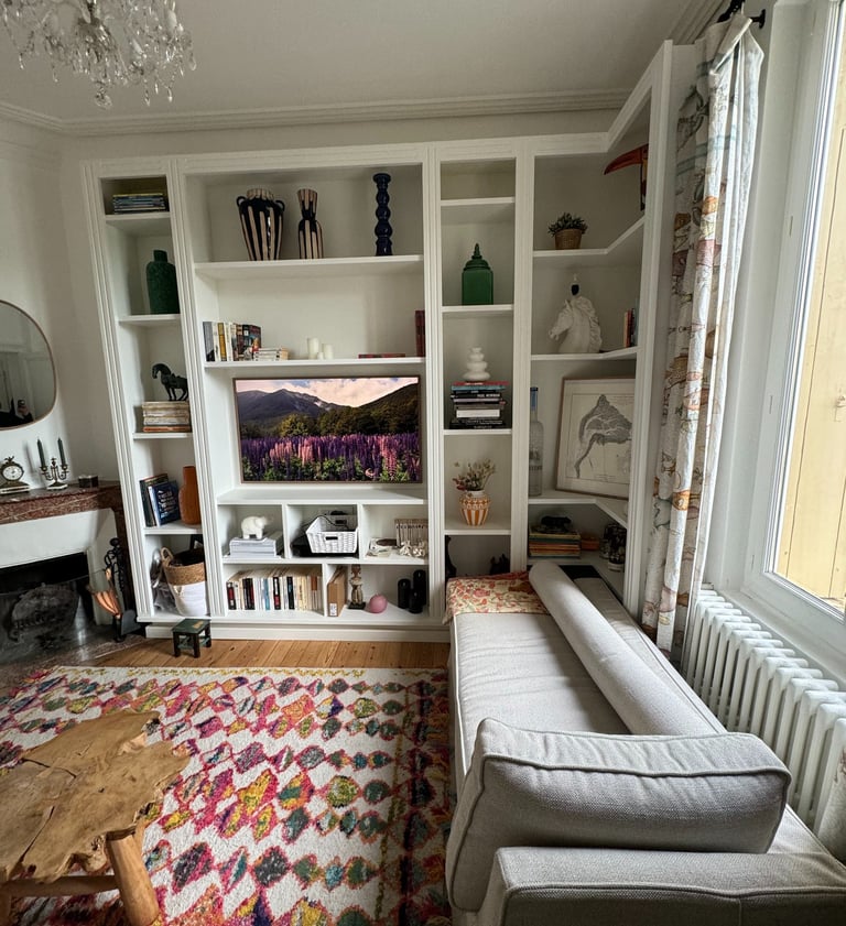 Cette bibliothèque avec sa réservation centrale pour la TV est un espace moderne et innovant qui offre aux utilisateurs la possibilité de regarder des vidéos et des films directement à partir de la bibliothèque. Idéal pour ranger votre collection de DVD, livres et autres contenus visuel.