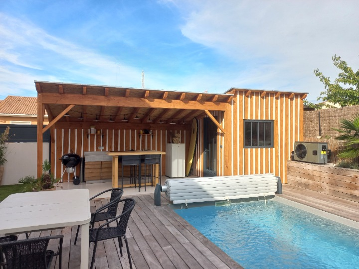 Une cuisine extérieure en bois est un excellent ajout à tout espace extérieur. Le bois apporte une touche naturelle et chaleureuse à l'environnement, créant ainsi une atmosphère conviviale et accueillante. La cuisine extérieure en bois offre également une grande durabilité et résistance aux intempéries, ce qui la rend idéale pour une utilisation en plein air. Avec des finitions et des designs variés, vous pouvez personnaliser votre cuisine extérieure en bois selon vos goûts et vos besoins. Que ce soit pour des barbecues en famille, des soirées entre amis ou tout simplement pour profiter de la nature, une cuisine extérieure en bois est un investissement qui ajoute une valeur esthétique et fonctionnelle à votre espace extérieur.